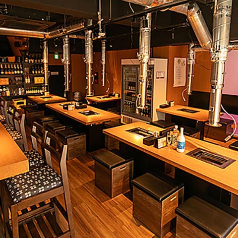 店内はブラウンと黒を基調としたシンプルなインテリア。細部まで清潔感溢れる店内でワンランク上の焼肉会食を。