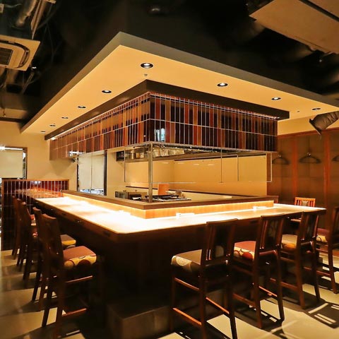 焼き場が見られるカウンター席(※系列店)
