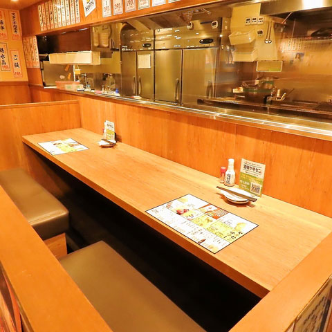 ライブ感のあるカウンター席で、スタッフとの会話を楽しみながら、サクッと飲みにも。