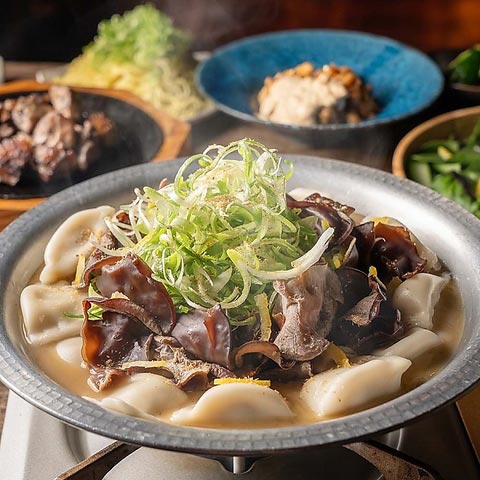 毎日仕込む鉄鍋餃子はビールと味わうと至福の一品。もちろん、九州各地から揃えた本格焼酎とも相性バツグン。