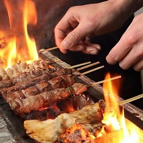 ぜひ食べたいのが、名物の炭火串焼き。とくに人気は「かしら」と「はらみ」。