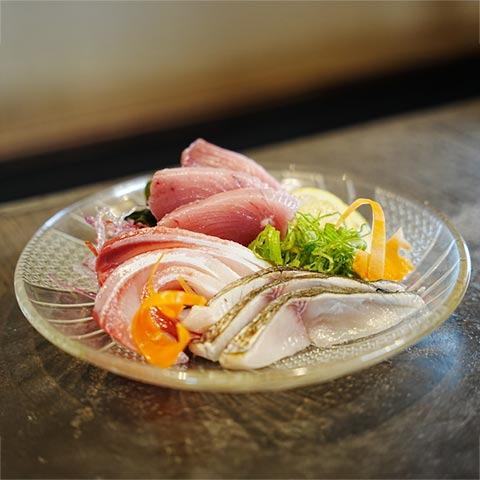 ほたて・まぐろ・サーモン・いか・たこ・甘えび・つぶ貝の全7種の刺身が、彩り豊かに雰囲気を華やかにしてくれます。