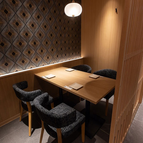 全席個室なので、デートやおもてなし、サプライズなどプライベートを重視する会食に。ワンランク上のおもてなしにぴったりな和モダンな洗練空間でゆったりとした時間を過ごせます。