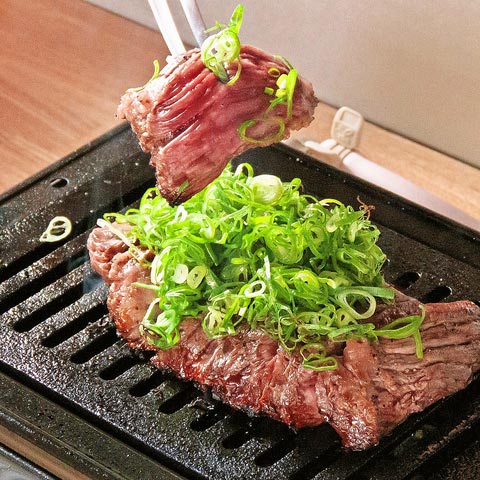 注文率8割の鉄板メニューは「極厚タン」と「上ハラミ」。他にも豊富な部位を用意していて、タレと塩を選べます。