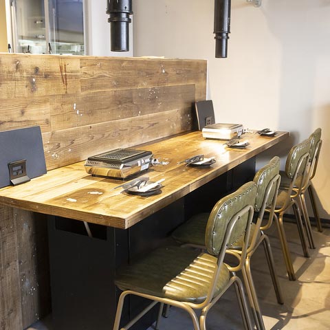 従来の焼肉店の概念を覆す、スタイリッシュな空間は女性同士、デートなどの利用にもぴったり。カウンター席もおすすめです。