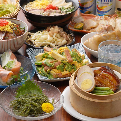 海ぶどう、豆ふようをはじめゴーヤちゃんぷるや沖縄のソウルフード沖縄そばまで沖縄の家庭料理を存分に。