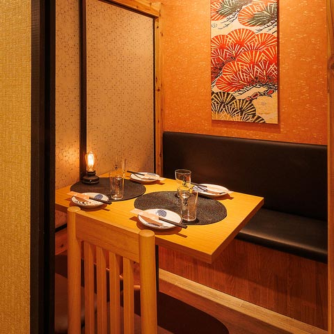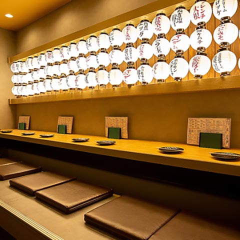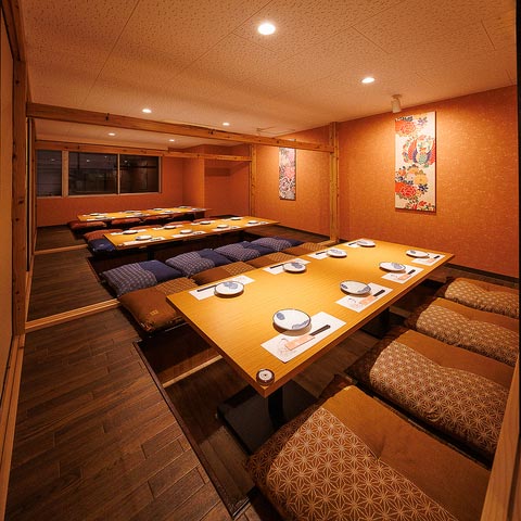 全席扉付き完全個室。荘厳な和空間で落ち着いた特別な夜を過ごせます。デートや接待のほか、大人数の会社の打ち上げもおまかせ。