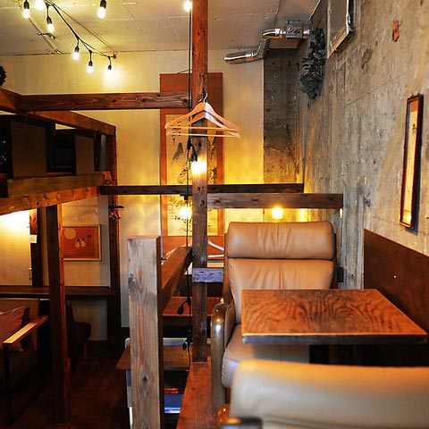 秘密基地の様な造りになっている屋根裏をイメージしたインテリア。大きなソファーシートにもたれると時の流れがゆるやかに感じます。