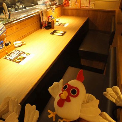 会社帰りの一杯には大きなカウンター席で本格地鶏をビールとともに。レトロな雰囲気のダイニングで貸し切り宴会もOK。