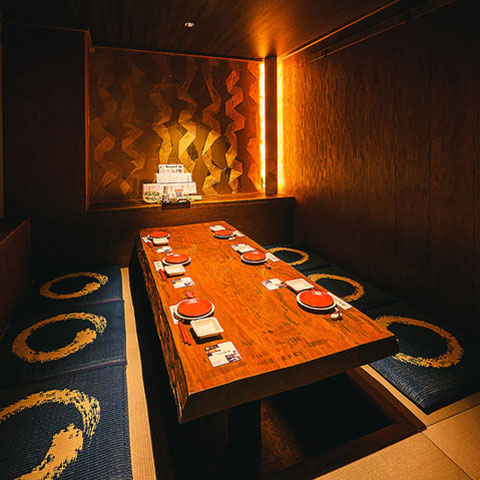 和情緒のある落ち着いた古民家のような店内。リラックスできる掘りごたつ席が多数。