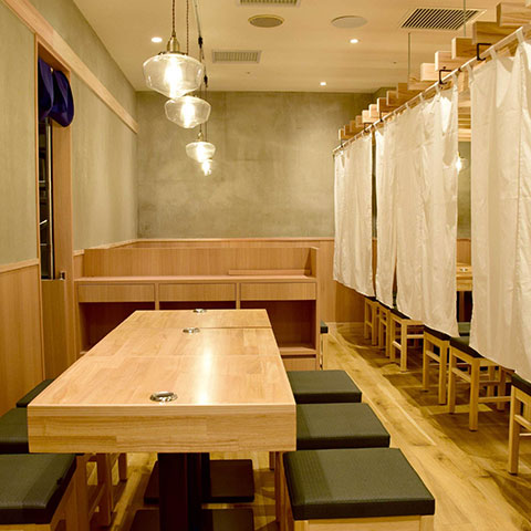 清潔感のあるスタイリッシュな店内は、仕切りのあるボックス席のテーブルなので、周りを気にせず串揚げを楽しめます。