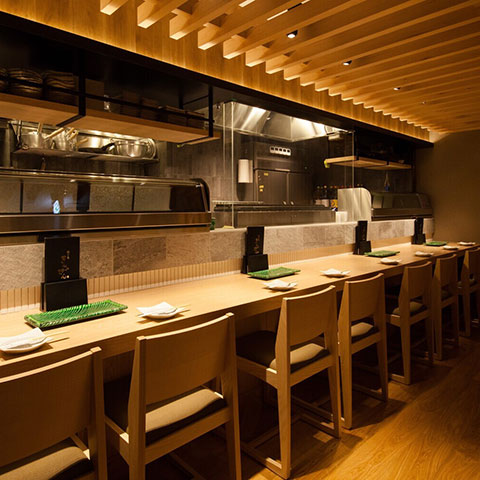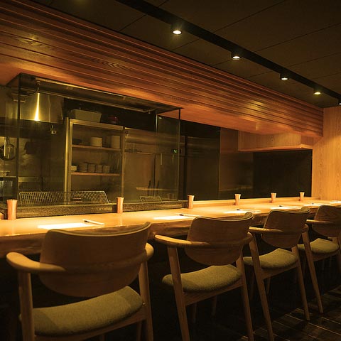 洗練されたインテリアの上質空間なので、女子会や接待にもぴったり。焼きの臨場感を味わえるオープンキッチンのカウンター席はデートに◎