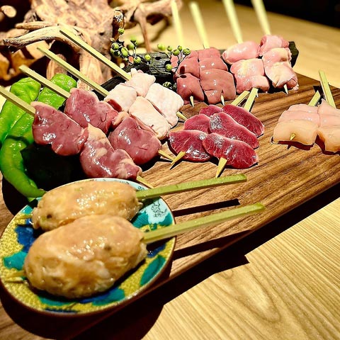 新鮮な朝挽き地鶏のみを使用したワンランク上の焼き鳥を提供しています。焼き師も社内規定の厳しい試験を通らないといけないため、最高の焼き鳥を堪能できます。
