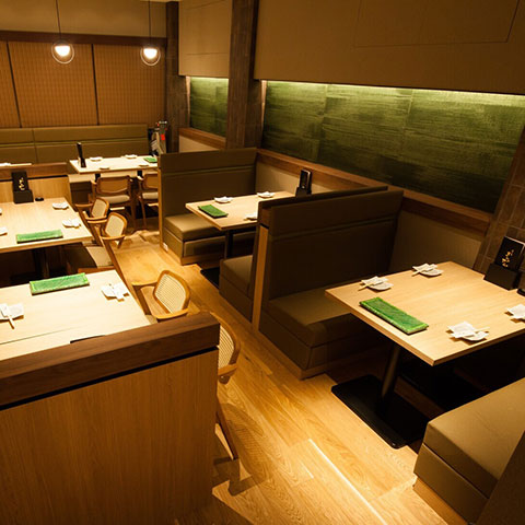 木のぬくもりと洗練されたセンスのインテリアが作る上質空間。焼き鳥屋さんとは思えない雰囲気なので、デートや女子会にもぴったり。