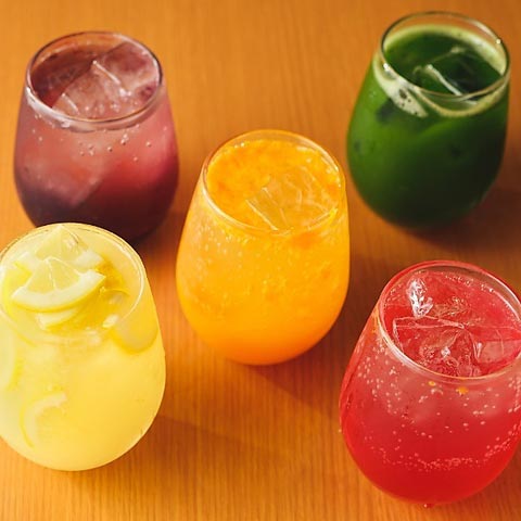 | サワー | 檸檬サワー/ピンクグレープフルーツサワー/玄米緑茶ハイ/ほうじ茶ハイ/紅茶ハイ/コーン茶ハイ/ルイボスティーハイ/ローズヒップティーハイ/ジャスミンハイ/緑茶ハイ |