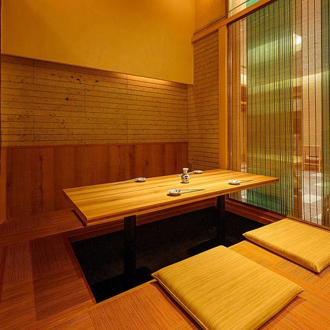 靴を脱いで寛げる掘りごたつ個室は純和風。様々なタイプの個室で多彩な人数に対応します。