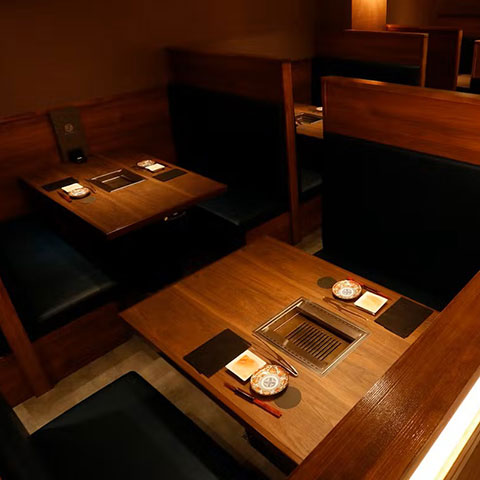 ボックス席メインのスタイリッシュ空間。匂いがつかないロースターなので、女性も安心。