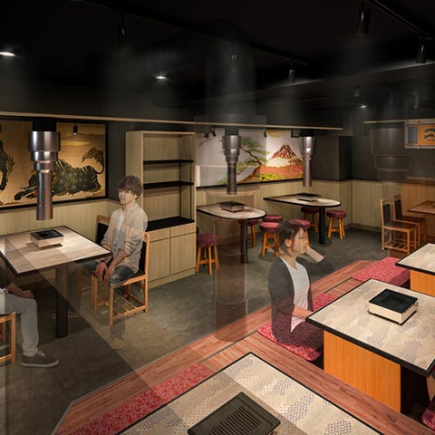 昭和レトロなどこか懐かしい大衆酒場の雰囲気。排煙対策ばっちりで、気心知れた仲間と焼肉を囲んで楽しいトークに花を咲かせましょう。