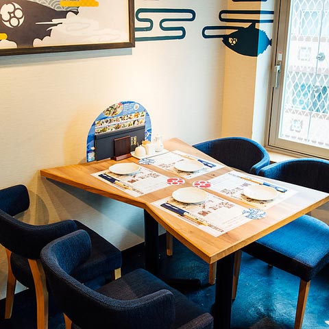 深海をイメージしたネイビーカラーのテーブル席