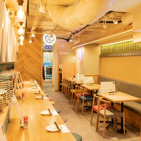 大衆酒場を謳いながらも清潔感のある店内。テーブル席が多く、会社帰りや学校帰りにふらっと立ち寄れて仲間とワイワイ楽しめる。