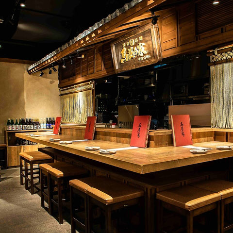 木目の風合いがシックな和モダンなインテリア。ペンダントライトが灯る癒し空間で食べる馬肉で今日の疲れをリフレッシュ。