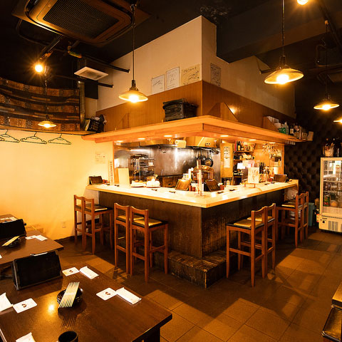 思わず「ただいま」と言いたくなるようなアットホームな店内。焼きの臨場感を楽しめるカウンター席が人気です。