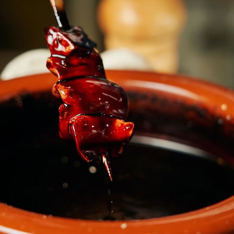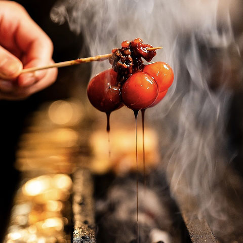 レアに焼き上げられた自慢の「レバー」と「ハツ」はお口の中でとろけるまさに絶品。他のお店ではなかなか味わうことの出来ない「ちょうちん串」は未成熟の卵巣。プチっと口の中ではじけ、濃厚な卵黄と自慢のタレが最高にマッチします。